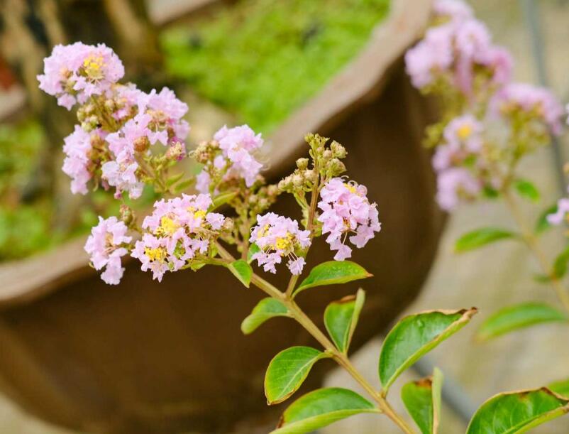 紫薇是喜光、喜水的植物,在紫薇的生長期時需要注意其光照充足、土壤濕潤,夏季高溫環(huán)境下需要適量增加澆水次數(shù),需少量多次的施以薄肥,平時也需要注意修剪枯枝、病枝等,促進紫薇生長、開花。