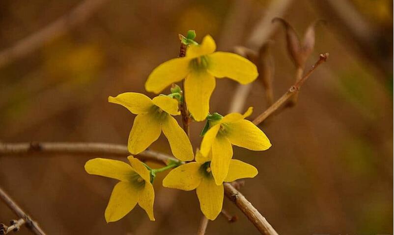 連翹是雙子葉植物綱連翹屬,落葉灌木的品種。這種植物通常是在早春時節就開花了,花開的時候香氣非常的淡雅,這種植物的花色是金黃色的,艷麗又帶有一點可愛,觀賞性極高,是早春時節的優良觀花灌木品種,生長高度可以達到三米?;ㄆ诩性?/font>3到4月份,結果期集中在7到9月份。
