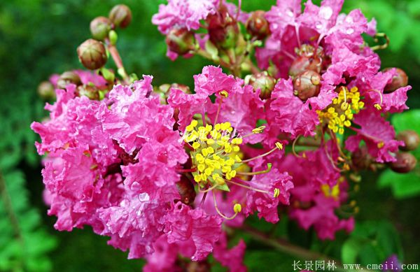 紫薇在園林中使用很普遍,因其開花時間為雨季,是缺花氣候,粉色花蕾格外亮麗,給酷熱的雨季帶去一些涼爽,是私家園林欣賞的好種類材料。紫薇可用于栽植花鏡,圖形,街道綠化,小區綠化,公園綠化等,見效快,緩苗期短暫,綠化效果好。另外它也也能夠與很多種園林苗木組合應用,創造各種景觀,比如與龍柏,美人梅,高山黃楊八仙花,叢生紫荊,紫羊茅,菊花苗,大葉黃楊,金葉女貞蔥蘭黃槽竹,鋪地柏鉛筆柏馬尾松,四季凌霄塔柏球,垂枝梅,刺梅花月季樹等一塊栽植。